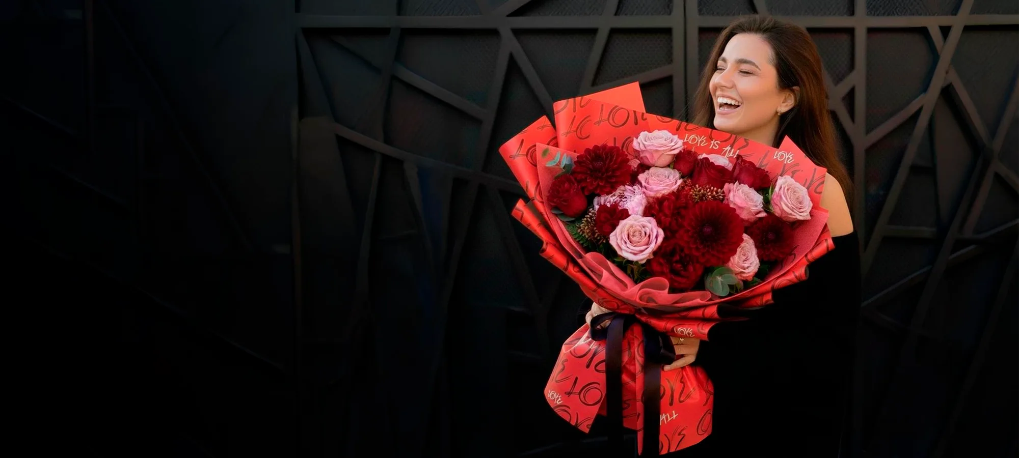 Vermelho Sólido Fosco e Escritas Pinceladas em Preto Fosco