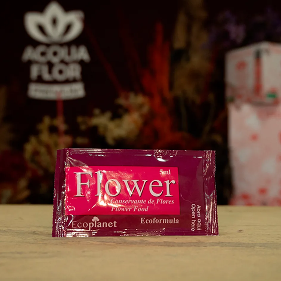 Formulado para garantir nutrientes essenciais e combater bactérias, o conservante ajuda a manter a beleza e a vitalidade das flores em buquês, arranjos e decorações.