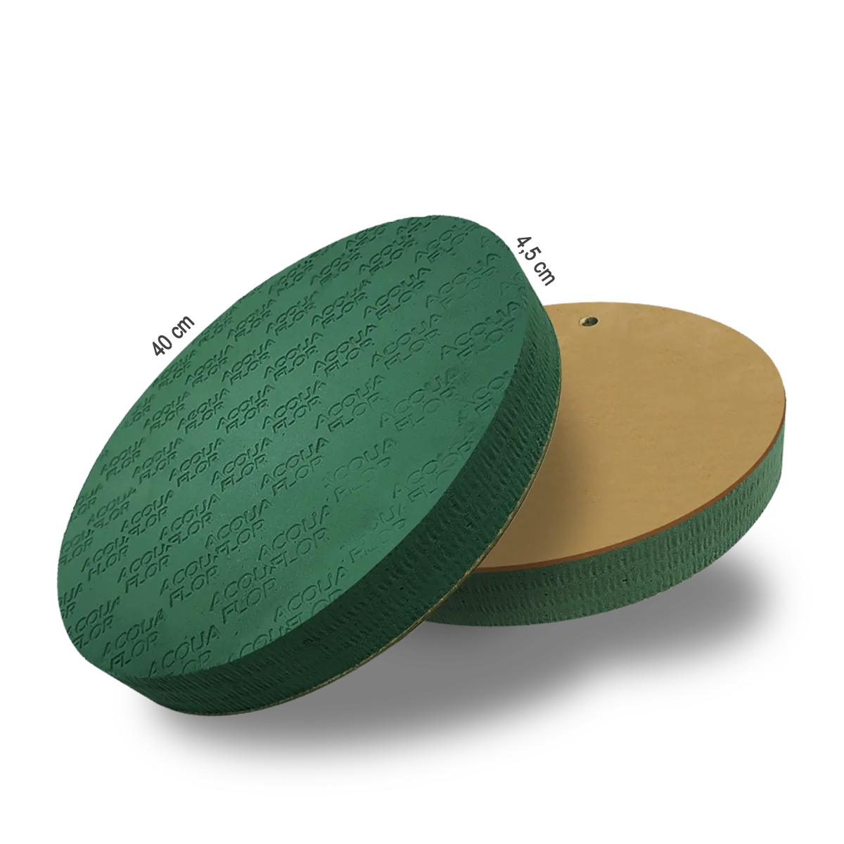 O Disco 40 é a maior opção da linha de espumas florais em formato de disco, com 20 cm de raio e 4,5 cm de altura, oferecendo uma base firme e generosa para arranjos florais horizontais e simétricos. Seu formato circular proporciona versatilidade na criação de centros de mesa, guirlandas compactas, bases decorativas e estruturas florais planas, com visual elegante e equilibrado.