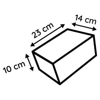 Dimensões: 23 cm (comprimento) x 14 cm (largura) x 10 cm (altura)