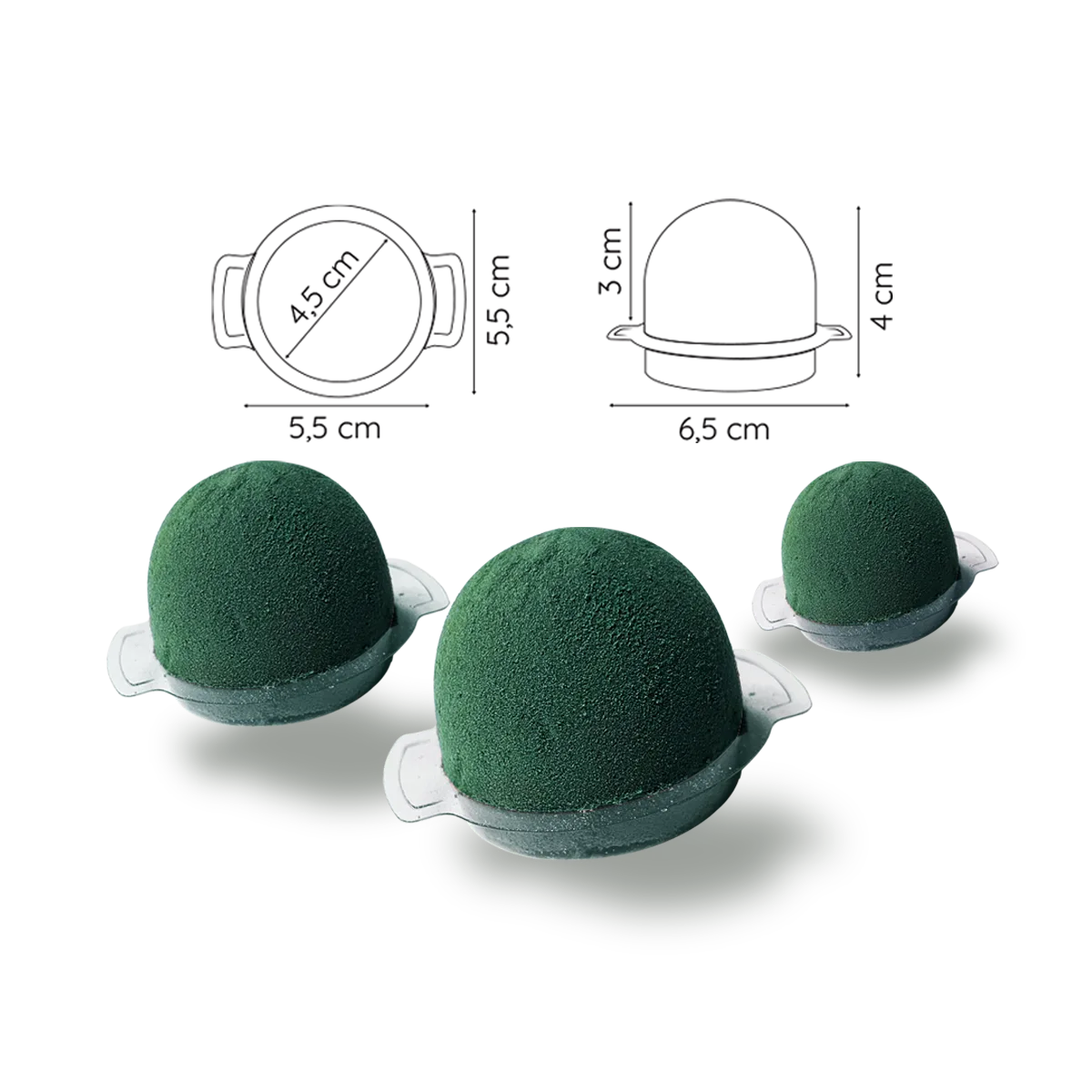 A Mini Base é uma espuma floral esférica que se destaca pela base estabilizadora, oferecendo maior segurança e facilidade no posicionamento de arranjos florais. Seu formato compacto e inovador proporciona alta absorção de água e fixação segura dos caules, garantindo arranjos frescos e bem estruturados por mais tempo.