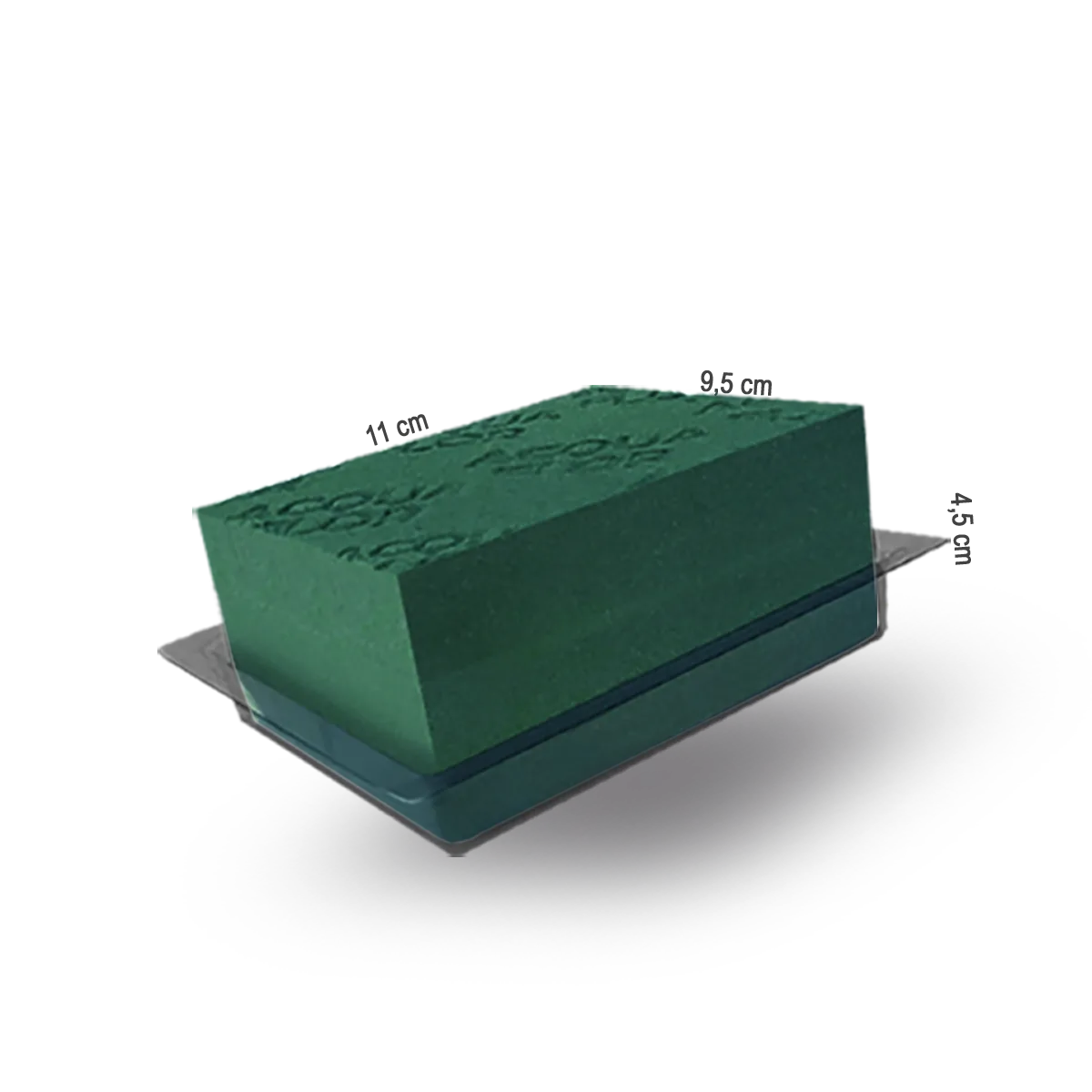 O Tijolo AF-250 é uma espuma floral compacta, com 11×9,5×4,5cm, que vem com uma bandeja de plástico própria, proporcionando maior praticidade e organização para o florista. Seu formato retangular e a bandeja facilitam o manuseio e a montagem de arranjos, tornando-o ideal para decorações de médio porte, centros de mesa, e pequenos arranjos para eventos e festas.